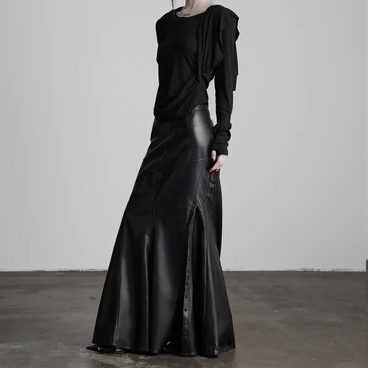 Women's Soft PU Leather Mermaid Skirt High-Waisted Long Length