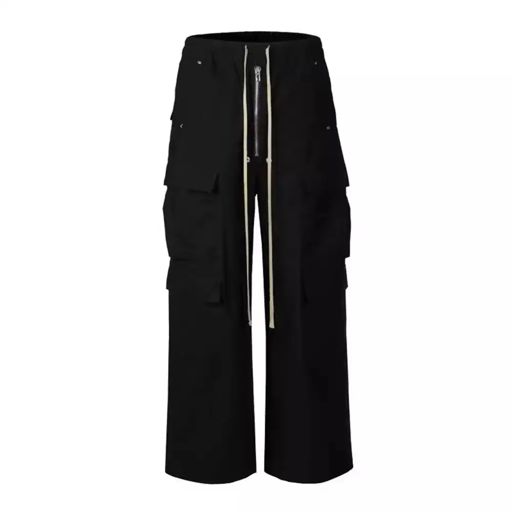 Men's Casual Black Cargo Pants Multi-Pocket Loose Wide-Leg Trousers