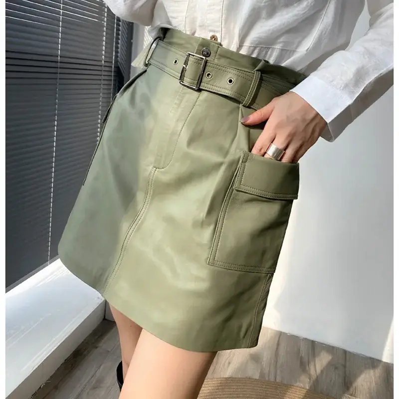 Women's Genuine Sheepskin Leather Fashion Sexy High-Rise Short Skirt