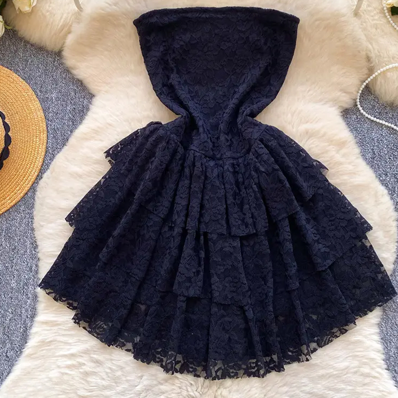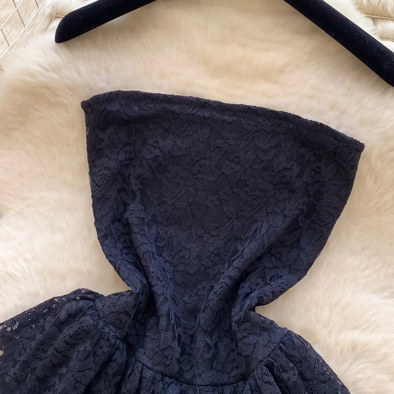 Highly Concerned Chemicals: None Neckline: Strapless Sleeve Type: Sleeveless Embellishing: Lace Style: Elegant Material: Polyester Color: Black Size: XS-L..